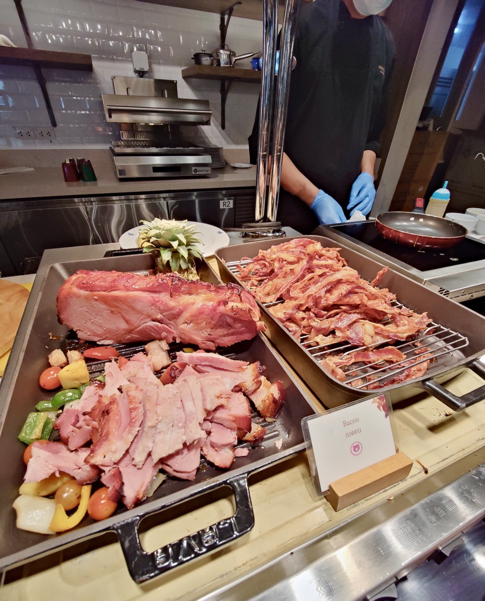 There was also cheese, fresh breads, and buns with an assortment of jams and preserves. From waffles to muffins and cakes, the breakfast selection catered to every indulgence. The hot station was where the aromatic fried rice with pork, stir-fried pork with chili, stir-fried vegetables and much more were being prepared and served.